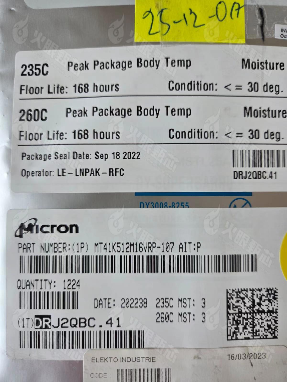电子元器件验标甄所,MT41K512M16VRP-107 IT:P/AIT:P型号图片
