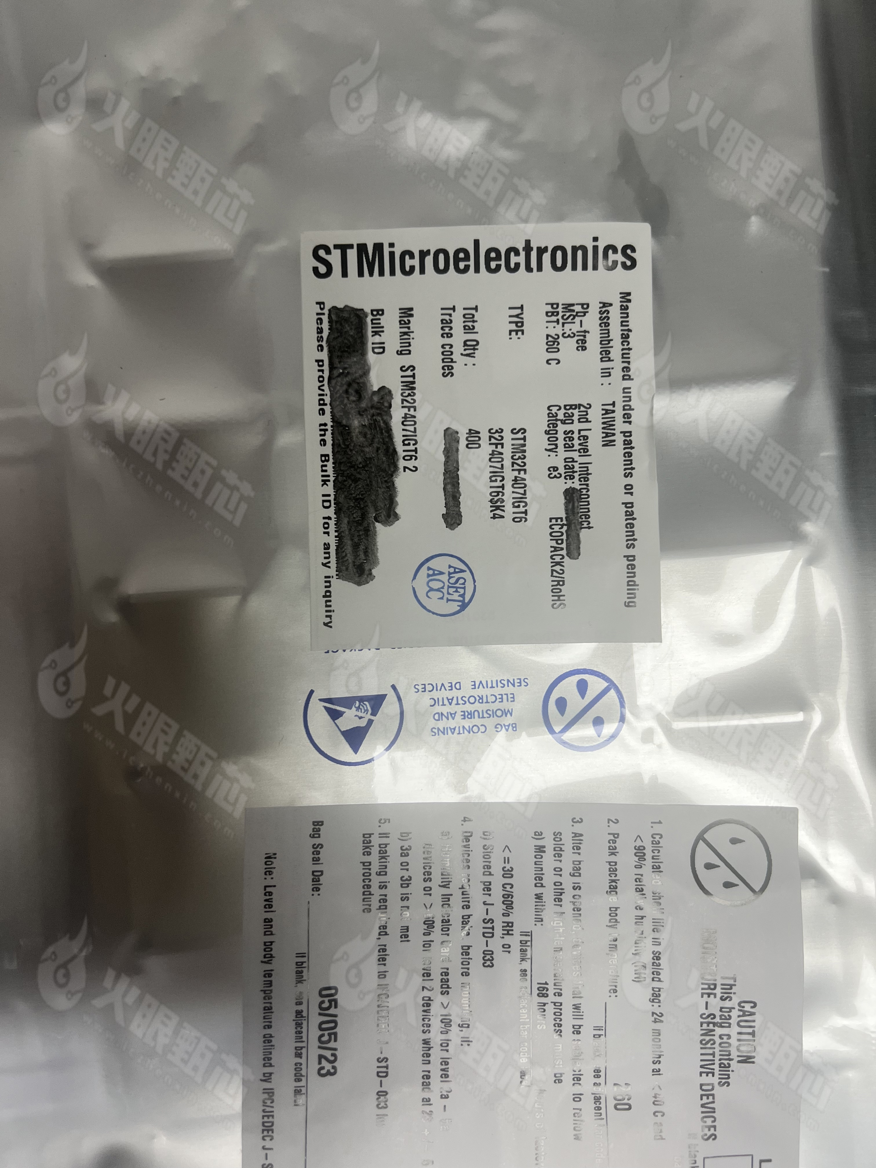 电子元器件验标甄所,STM32F407IGT6型号图片