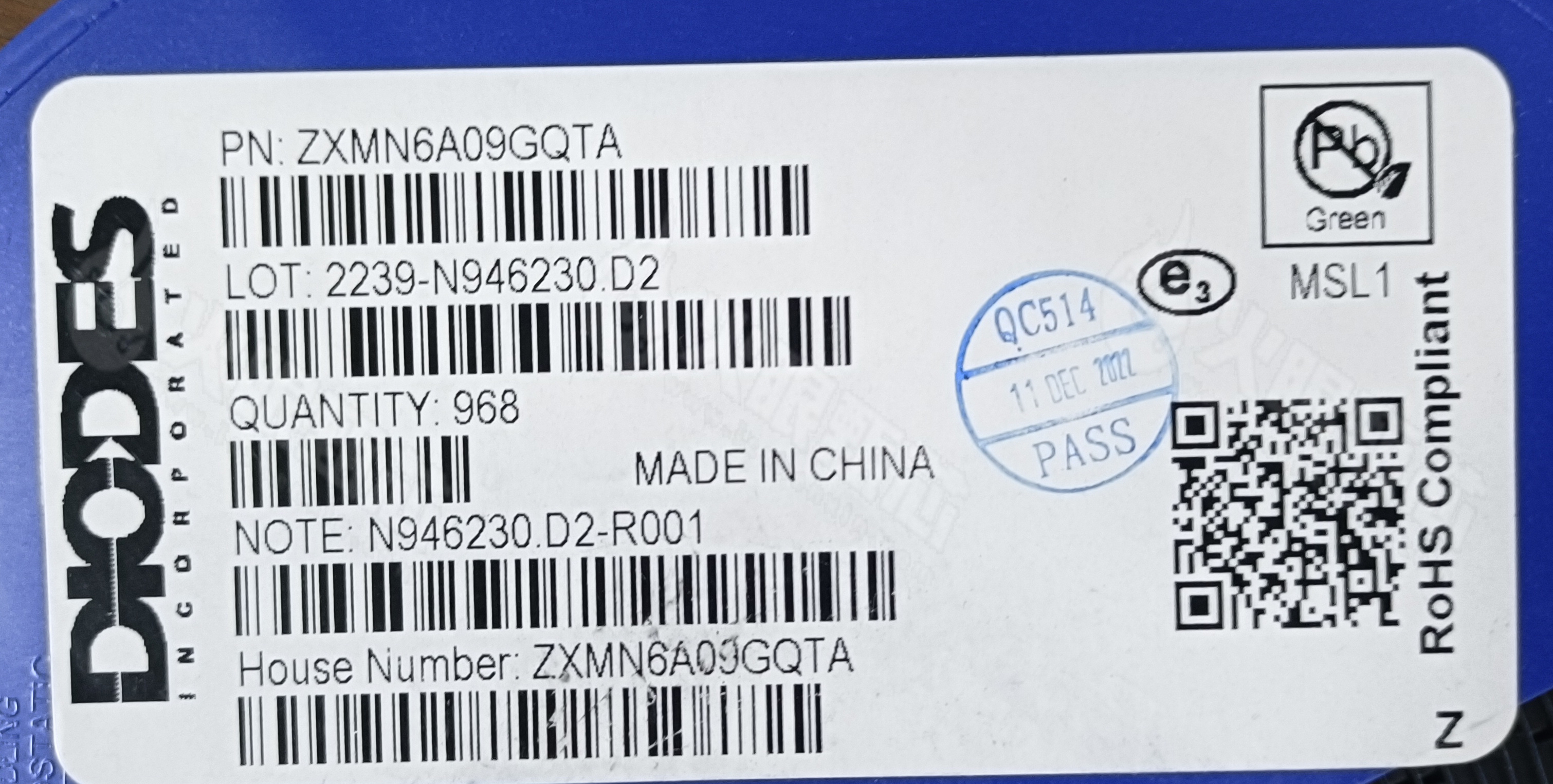 电子元器件验标甄所,ZXMN6A09GQTA型号图片